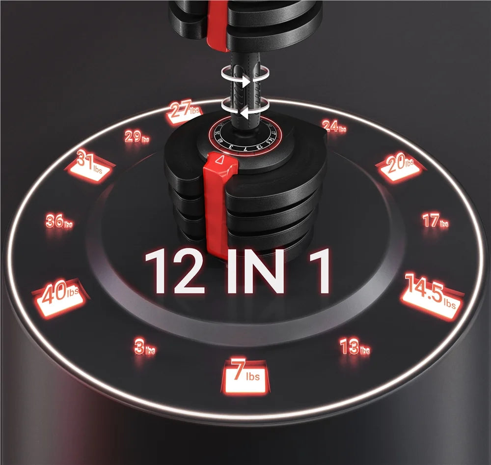 12-In-1 Quick-Adjust Dumbbell Weights, Black, 3-40 Lb